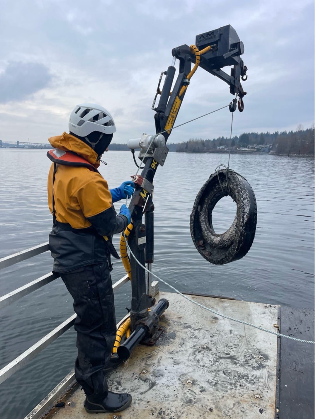 In the summer of 2023, our Lands, Water and Environment (LWE) team began to investigate ghost gear (abandoned crab traps, anchors, tires, etc.) in various tidal zones on Tsleil-Waututh Nation territory.