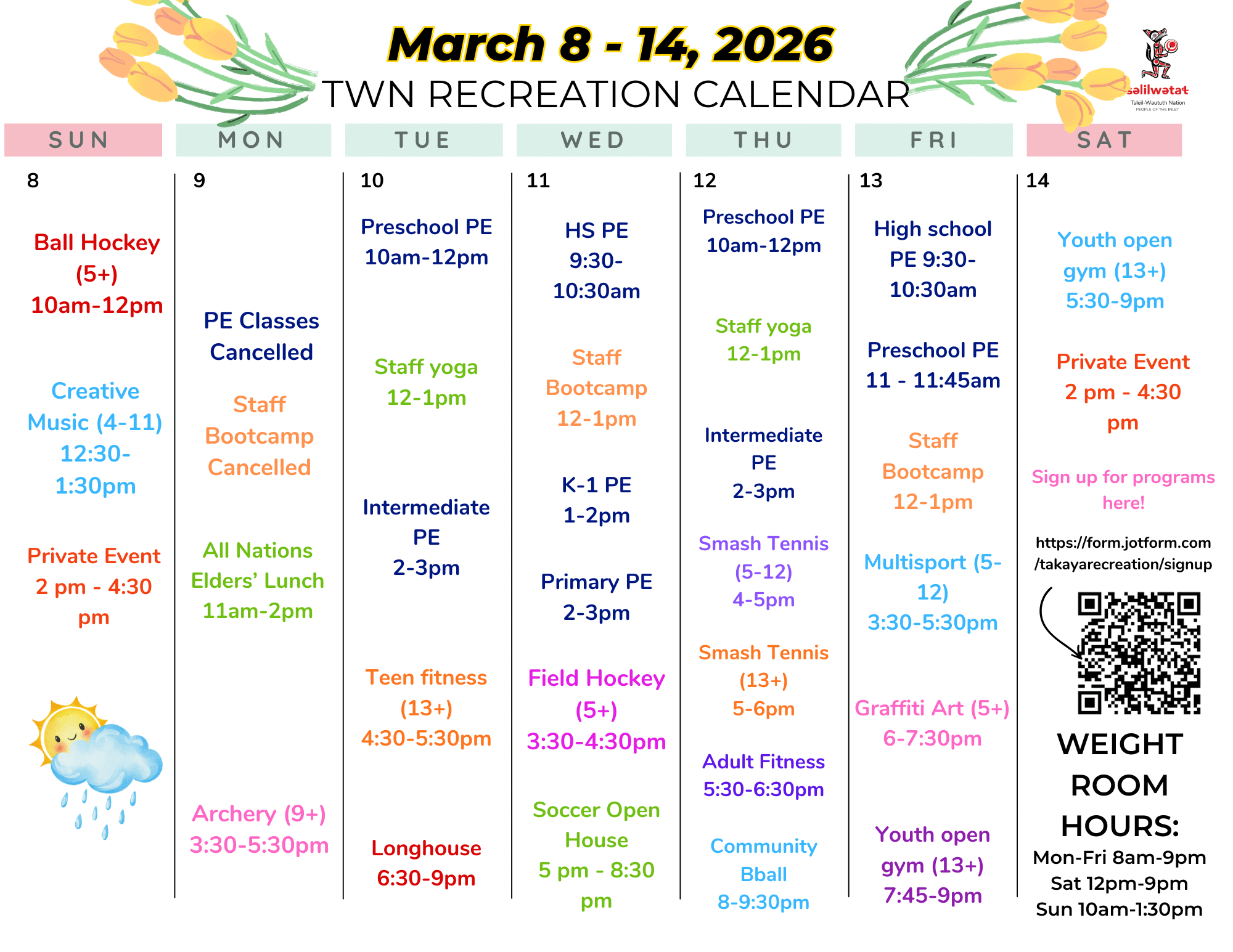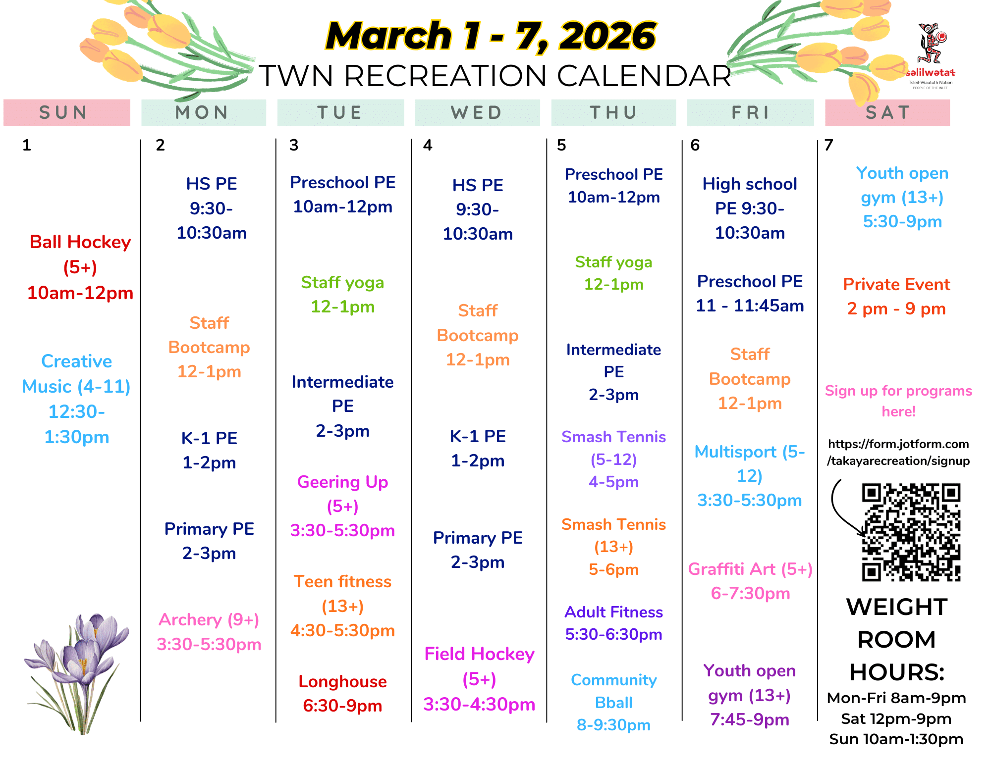 Tsleil-Waututh community, to register for Recreation programs, please use the Sign Up Sheet.