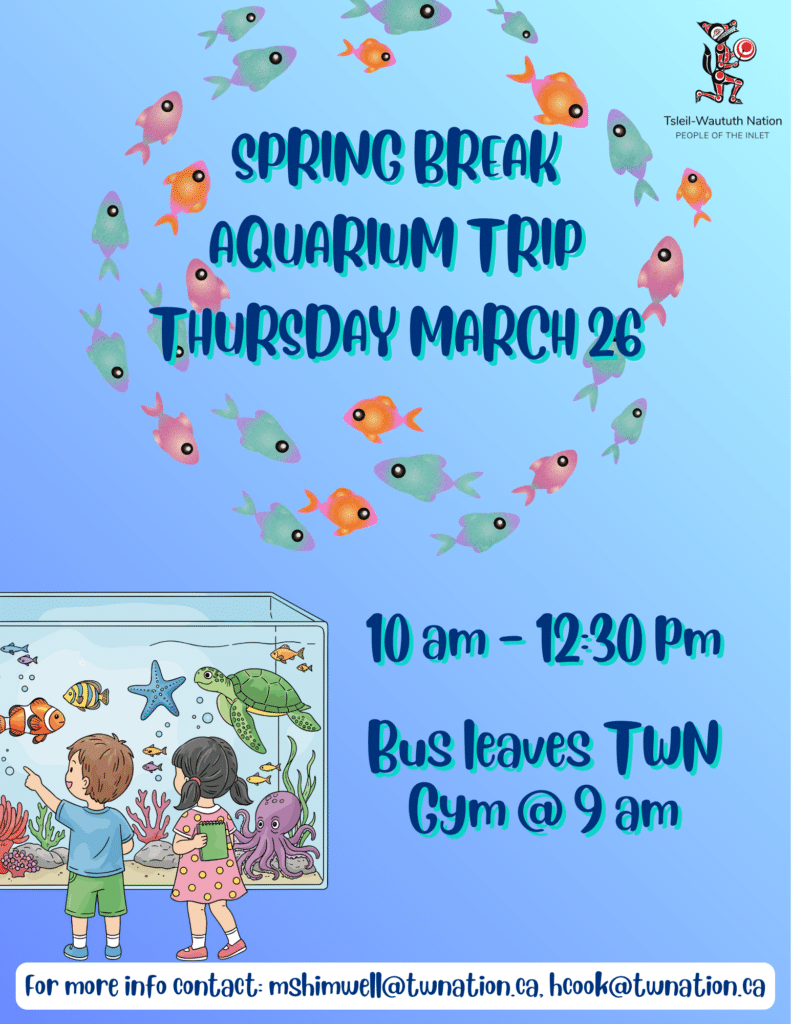 For questions about our TWN Recreation programs, please contact Marc Shimwell, Acting Recreation Manager at mshimwell@twnation.ca; 778-838-6197, or Lyden Irani, Recreation Administrative Assistant, at lirani@twnation.ca; 604-404-4926.