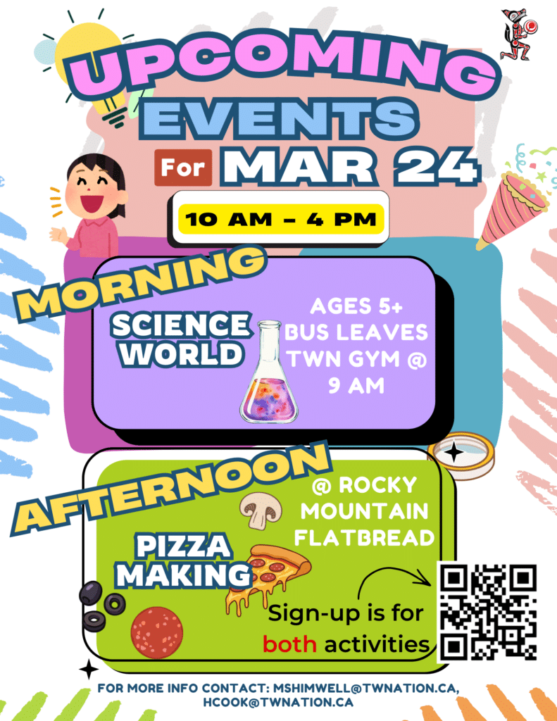 For more information, check out the Recreation webpage: https://twnation.ca/health-and-wellness/recreation-programs/