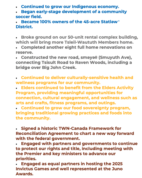 Our work has been focused on strategic pillars and guided by our elected Chief and Council. This report reflects the past fiscal year: April 1, 2024 – March 31, 2025 and our previous Chief and Council.