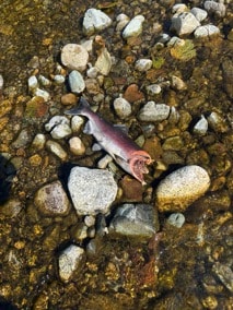 In the late summer, the pink salmon run was facing some challenges when the weather remained dry and sunny for an extended period, creating drought conditions on the mainstem of the Indian River. Trying to be as proactive as possible, we worked closely with our partners at DFO in the Restoration Unit and with Fortis BC for machine access, to determine a drought plan for a section of the river with low water levels. The Crew and DFO staff spent 2 weeks conducting site visits and with the support of Fortis BC, placed aerators in deeper sections where the fish were holding and oxygen levels were being depleted. Thankfully, the change of season from summer to fall came, and we received the rain we needed to avoid any major works in the river this year. The pink run was able to make their way up and continue spawning in the mainstem of the river.